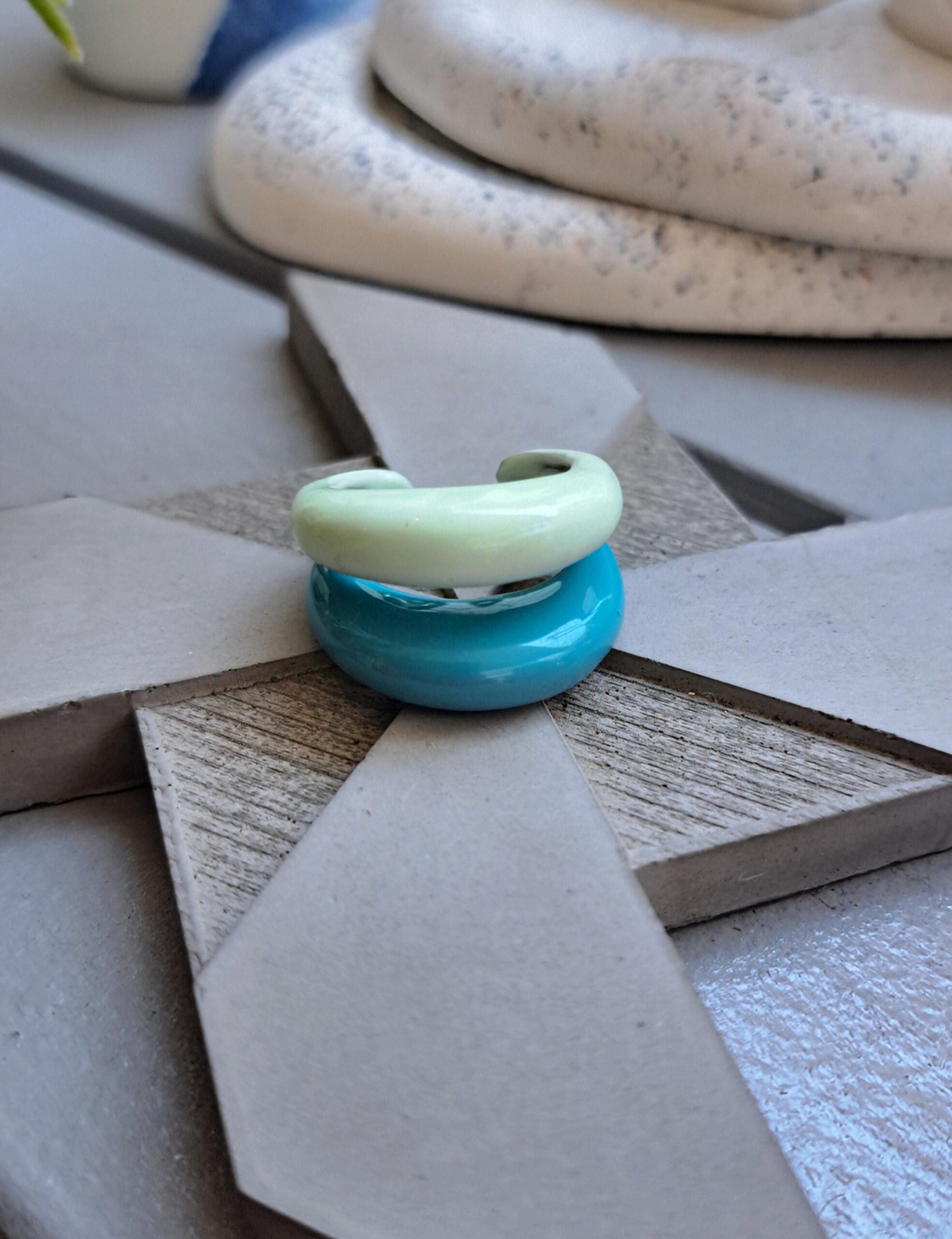Unique two colors enamel rings. Fresh and shiny colors in fashionable varations.