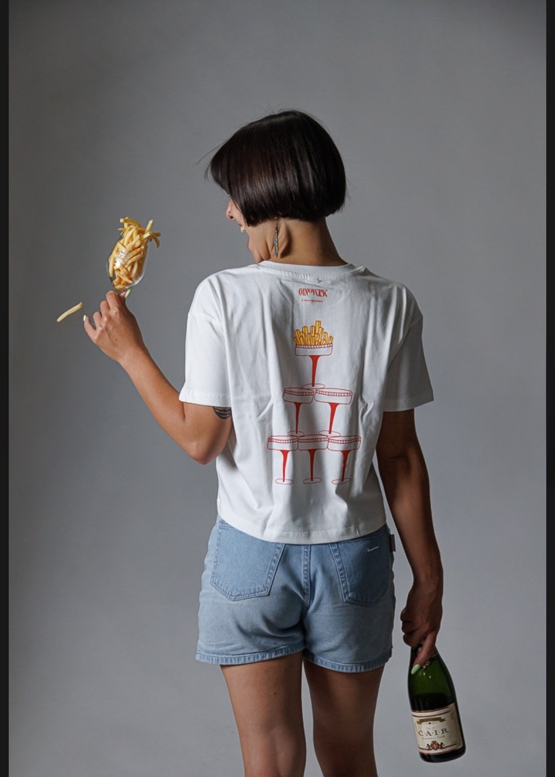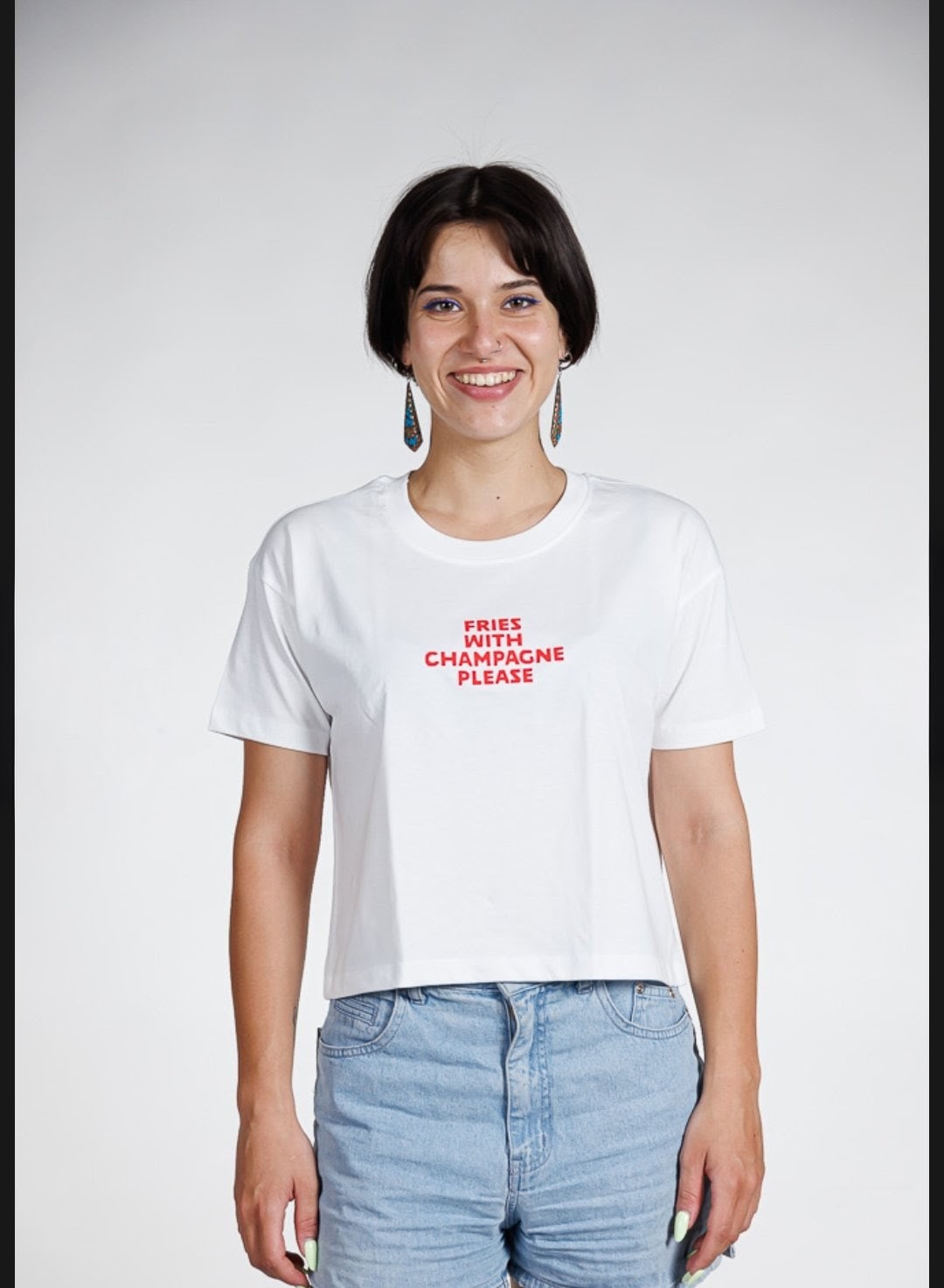 FRIES WITH CHAMPAGNE PLEASE- PREMIUM CROP TOP- WHITE